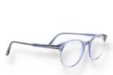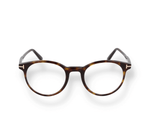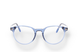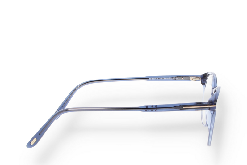 Tom Ford FT5695-BV 090 eyeglasses, made of plastic, blue in color, with a round shape.