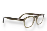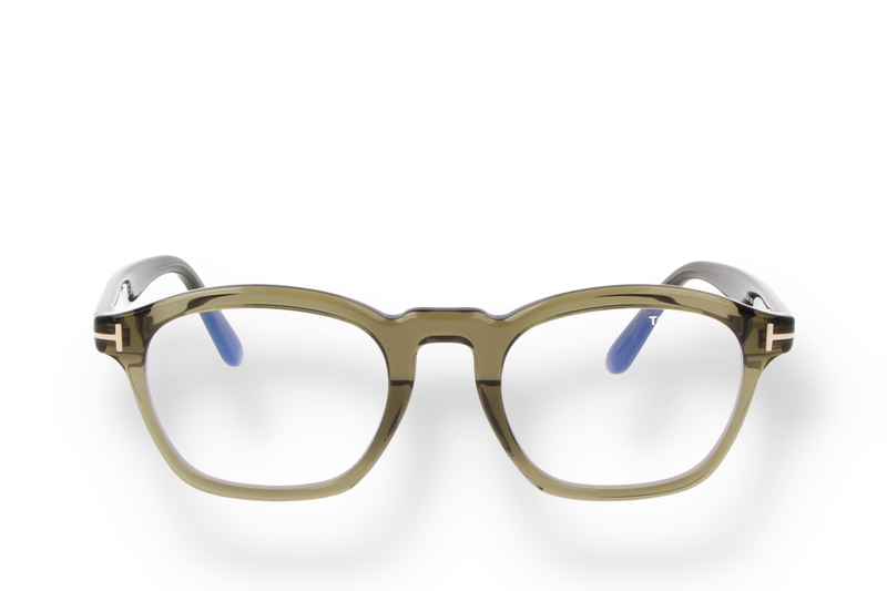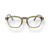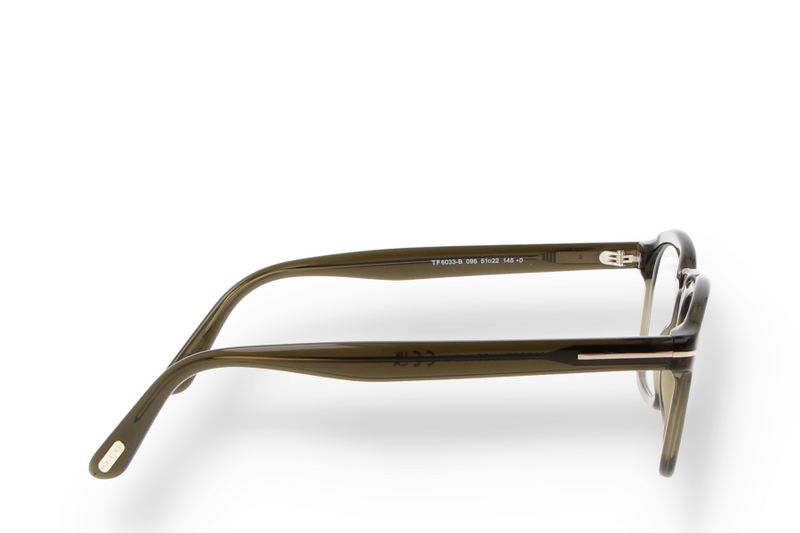 Tom Ford FT6033-B 096 eyeglasses, made of plastic, green in color, with a cat-eye shape.