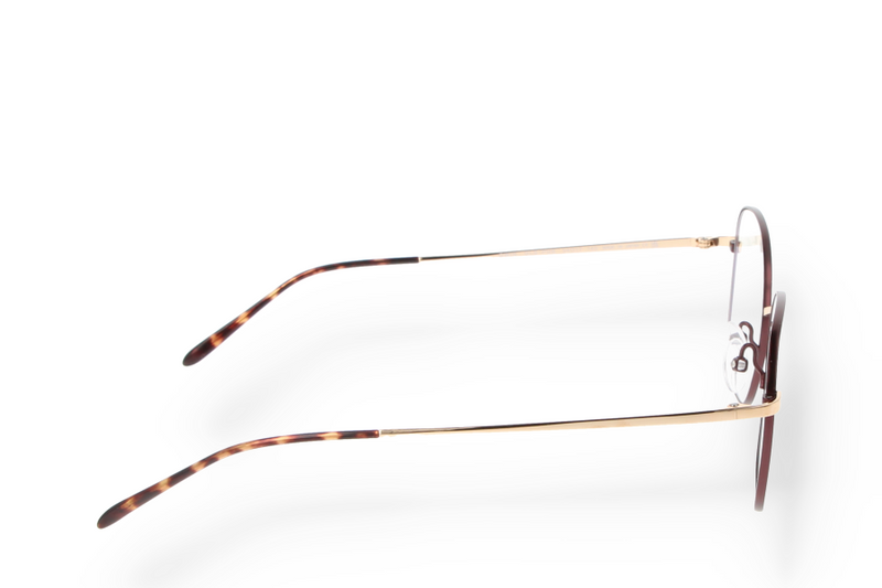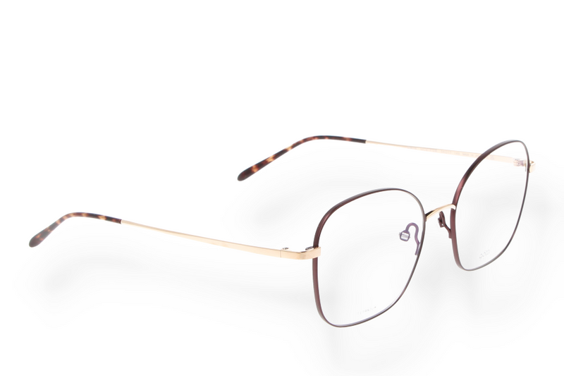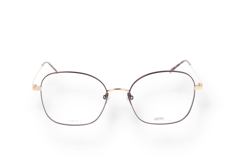 Götti Switzerland GWIN GLS-PUB eyeglasses made of titanium in burgundy with a geometric shape.
