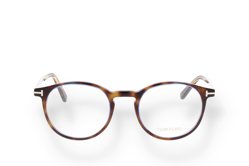 Tom Ford FT5294 056 eyeglasses, made of plastic, in a round shape, and in a Havana color.