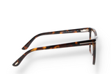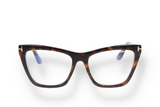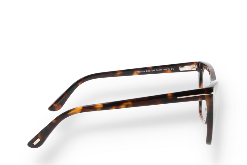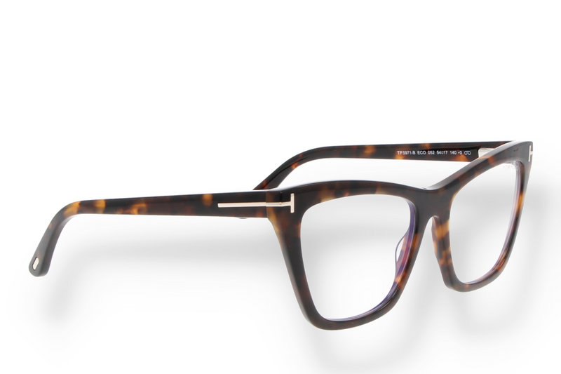 Tom Ford FT5971-B 052 eyeglasses, made of plastic in a Havana color with a cat-eye shape.