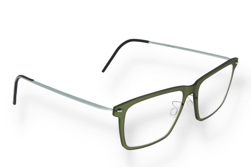 Occhiali da vista Lindberg N.o.w. 6646 11M-30 di materiale titanio e di colore verde con forma rettangolare